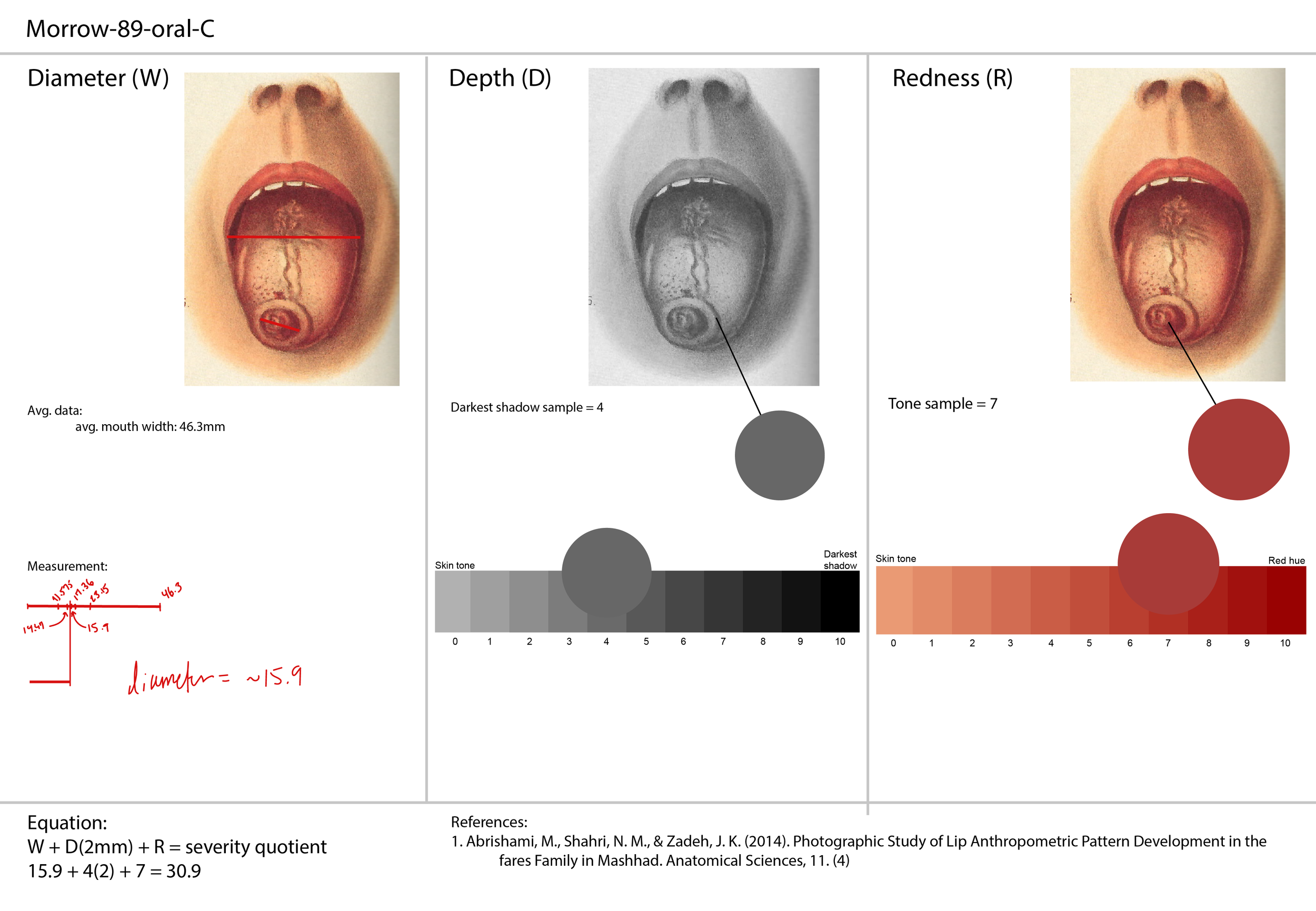 A survey of historical images of the syphilis primary chancre was conducted - this would be the pathognomonic, cutaneous focus of the project. These images, spanning from 1773 to 2019, would serve as case studies with visual information indicating the erythema, edema, and diameter.